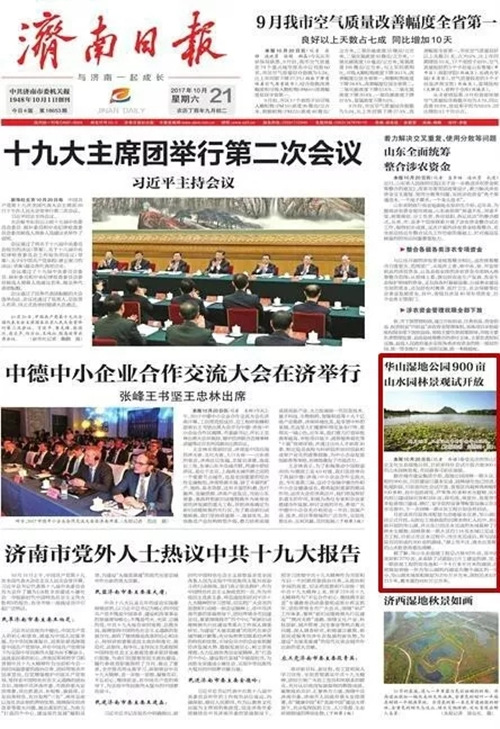 济南日报:景观区内栽种各种植物100多种,荷花池、观景台、景观亭等多处景观已建成。