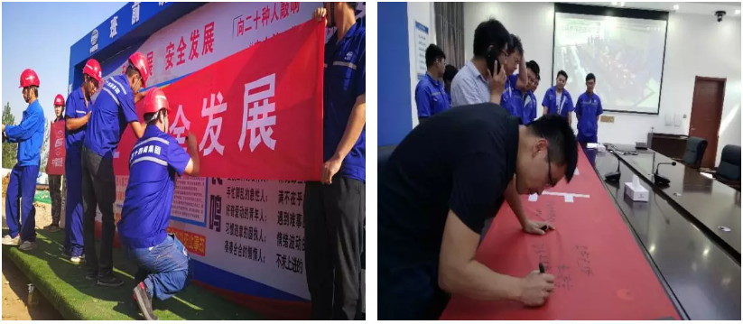 集团各单位分别结合项目实际情况,制定出活动内容、方案和活动时间表,做到有组织,有领导,有条不紊地组织开展“安全生产月”活动。在氛围营造上,不仅深入学习领会和贯彻省、市关于加强安全生产工作部署要求,更加大安全月活动宣传力度,在各单位基地、场站、在建项目等区域展出横幅、标语、宣传栏,并通过在安全标语上签名等形式充分调动职工安全月活动的积极性,充分形成安全生产无小事,人人关心安全,安全关系人人的良好氛围。