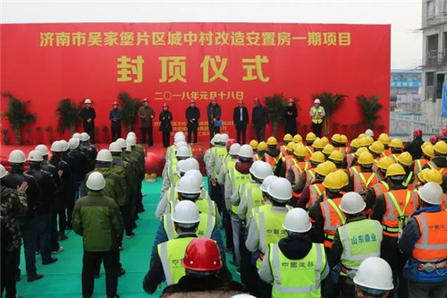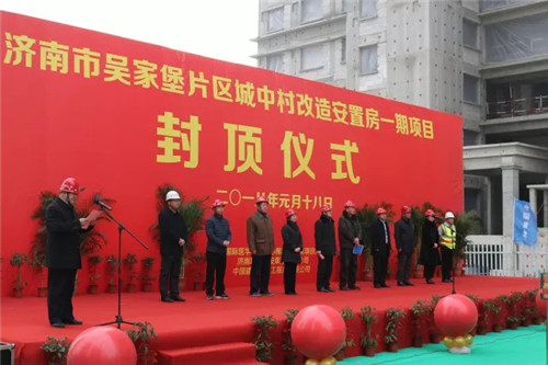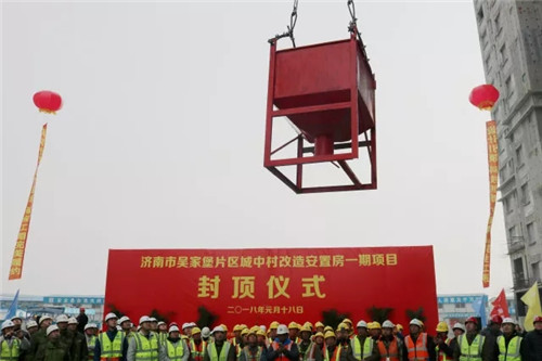 1月18日上午,备受社会关注的济南市第一个多村整合改造城中村项目——吴家堡片区城中村改造安置房一期主体结构顺利封顶。