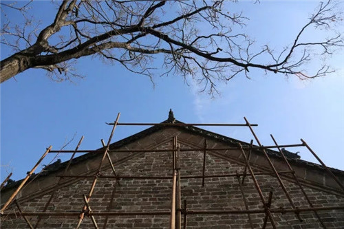 由于季节和温度原因,古建的恢复修缮工作(湿作业)目前已经进入“冬歇期”,春节后将全面恢复施工,保证今年五一前如期完工。