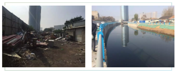 迎济桥以南河道西侧(造纸厂东侧)施工前与施工后