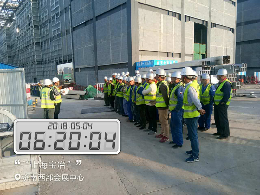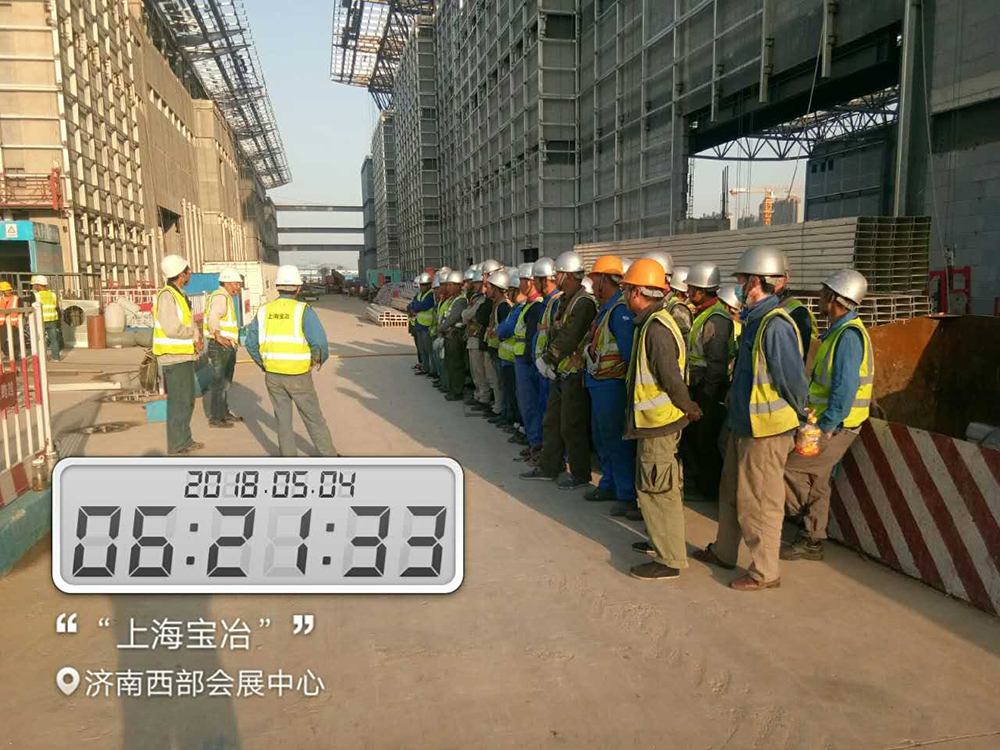 为确保项目建设有序推进,项目部不但充分利用现在施工黄金季晚上加班加点赶工期,还通过早班会制度对员工进行当天工作任务目标下达与安全文明教育。“会展中心项目部共有20多个班组,每天早上7点进场前,都会以班组为单位召开早班会,针对当天的生产任务安排、安全文明教育等事项进行宣贯,确保每个人都能明确任务目标。同时,早班会的时间也是员工们对工作技巧、困难相互交流的好机会,能发现并解决问题,查究短板不足,提高了整体工作效率。”项目现场负责人介绍道。