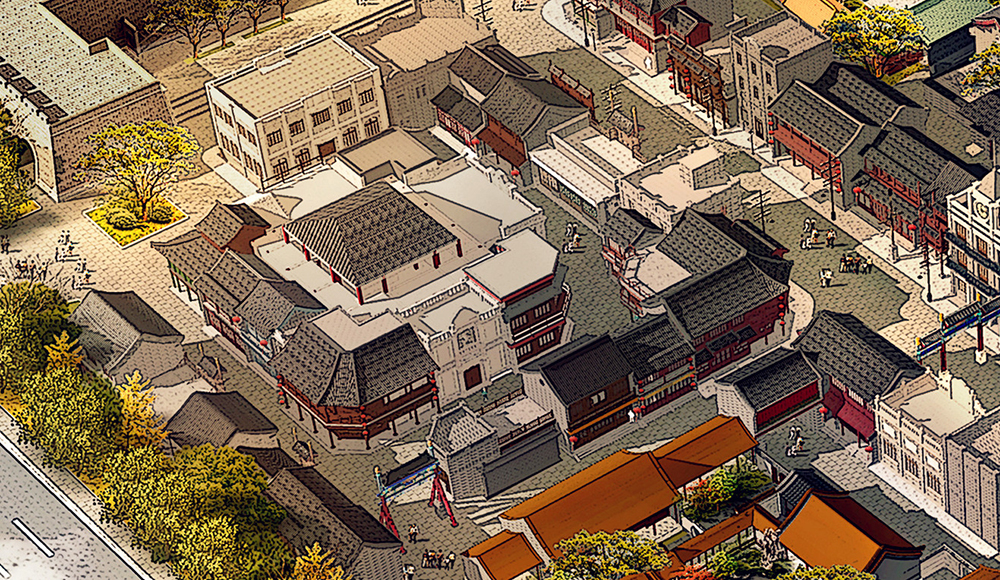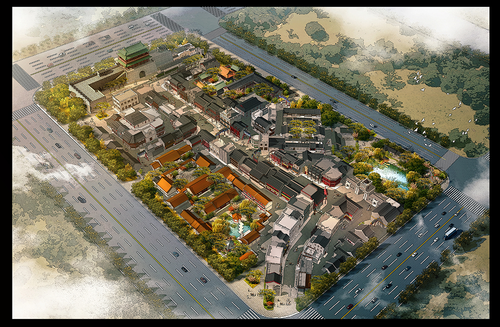 目前,项目现场与规划效果图的“吻合度”已经越来越高。占地面积最大、院落层次最复杂的“亲王府”已现雏形,城隍庙、城门楼、各类民国建筑轮廓一目了然,不久的将来,这些场景都将会出现在影视作品中。