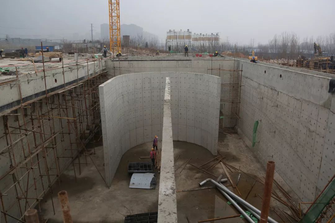 腊山水质净化厂项目控制用地3公顷,设计处理规模40000m³/d,主要服务于腊山片区及玉符河两岸收集的生活污水,工程规模4万吨/日,处理出水满足《城镇污水处理厂污染物排放标准》的一级A标准,污水处理主体工艺采用预处理+AAO工艺+深度处理工艺。目前,项目投入近240名工作人员,各通水单体的建设正加班加点推进中,努力确保按计划完成。