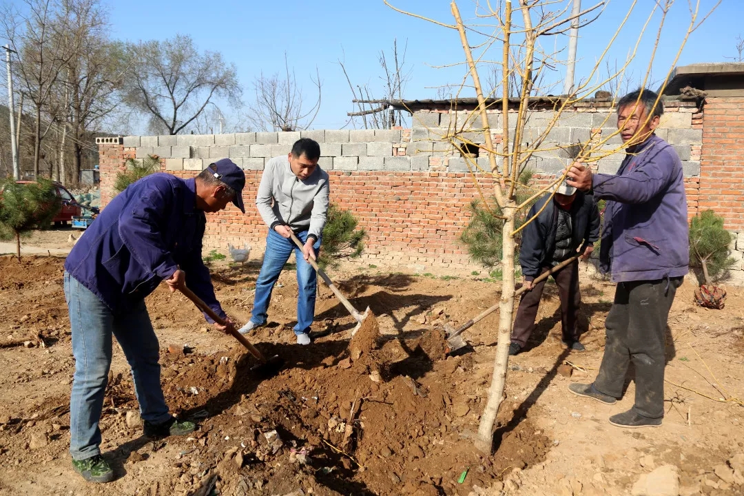 今天的第一项工作,是要在村里的公共裸土上植树增绿。“这片位于村口的空地原来是块荒地,时间长了成了处垃圾场,既污染环境又影响村容村貌,按照镇里裸土覆绿的要求,我们用争取的1万元资金购买了黄金槐、黑油松、樱花等好存活且观赏性较强的苗木,把原荒地整平后进行裸土覆绿”王栋栋说道。