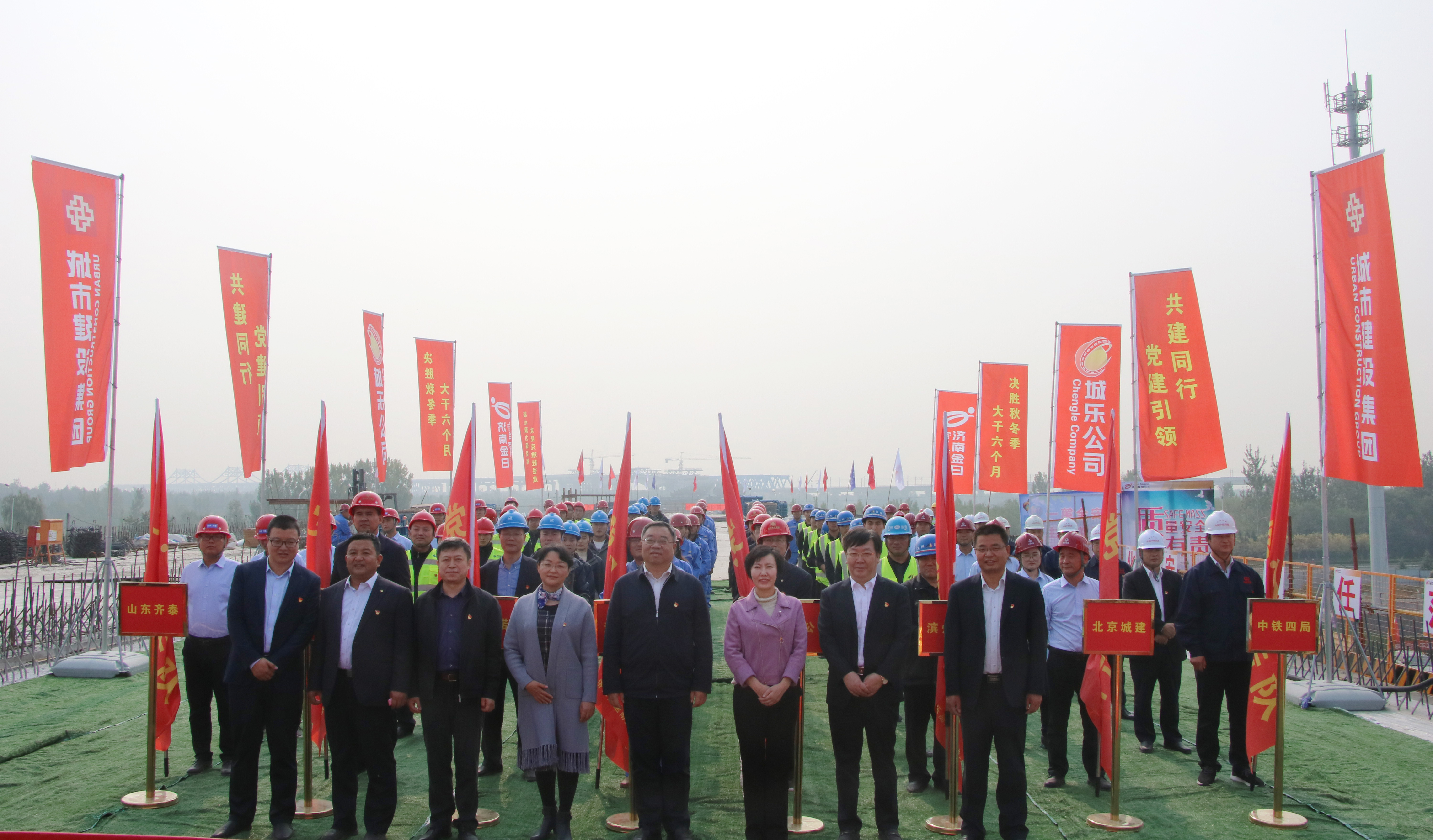 为深入开展“不忘初心、牢记使命”主题教育,结合集团“大干六个月、决胜秋冬季”动员会会议精神,充分发挥党支部在建设一线的战斗堡垒作用和党员先锋模范作用,掀起工程建设大干高潮,10月22日,济乐高速南延项目施工现场举行了“党建引领、共建同行”主题活动启动仪式暨“大干六个月、决胜秋冬季”攻坚誓师大会。