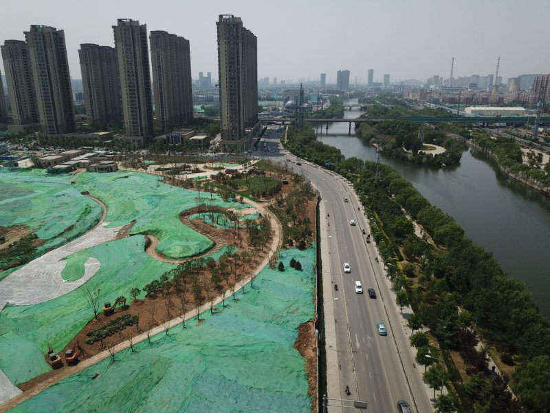 项目自4月底进场施工以来,已完成拆迁并具备施工条件的区域正全力推进建设中,目前正进行湖区土方外运、公园绿化景观打造、园路混凝土浇筑、广场基础开挖、游船码头开挖基槽等工作,6月底具备初步景观效果,7月对湖区(已完成拆迁区域)进行注水后将形成6.5万平方米湖面。