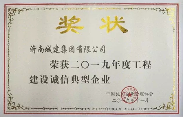 所属济南城建集团荣获“2019年度工程建设诚信典型企业”称号。