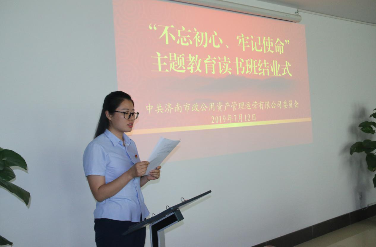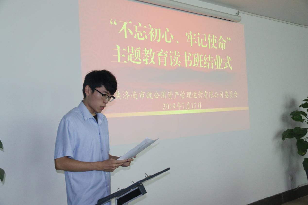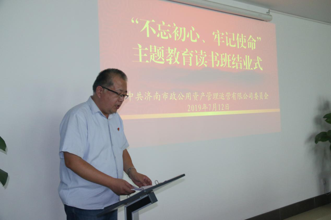 党委要求,7月5日至7月12日期间,济南市政公用资产管理运营有限公司举办“不忘初心、牢记使命”主题教育读书班,并于7月12日上午在公司1066会议室举办结业仪式。公司党委副书记、总经理李少成同志出席结业式并讲话,公司领导班子成员、主管及以上人员、全体党员参加了此次结业式,会议由公司党委委员、副总经理史德茂同志主持。