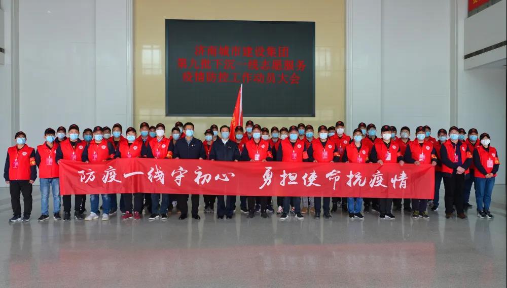 第九批下沉社区一线志愿服务疫情防控工作动员大会召开。由黄河路桥48名干部职工组成的第九批防疫志愿服务队,会后奔赴济阳社区一线,与第八批工作组成员进行工作交接。