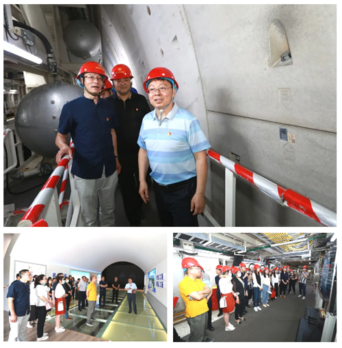 第三站参观济南黄河隧道施工现场,通过现场讲解和视频短片介绍,党员同志初步了解了济南黄河隧道项目建设总体情况及大型盾构机设备工作原理,并进入盾构机掘进现场体验查看。