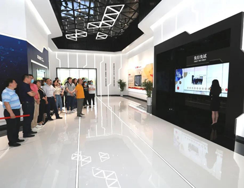 第二站到达先行区城市展厅,参观济南新旧动能转换先行区展厅并观看了先行区总体规划多媒体视频、国博城项目多媒体视频,全面了解先行区总体规划和会展中心设计蓝图。