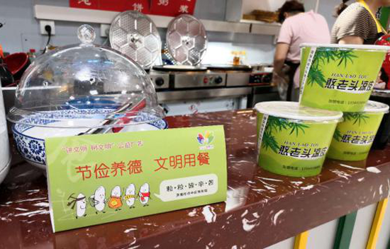 为进一步弘扬中华民族勤俭节约的传统美德,济南市英雄山人防商城在全商城内开展了“勤俭节约、文明餐桌”行动,使厉行勤俭节约、反对铺张浪费为广大职工、业户及营业人员的自觉行动,让勤俭节约理念深入人心。