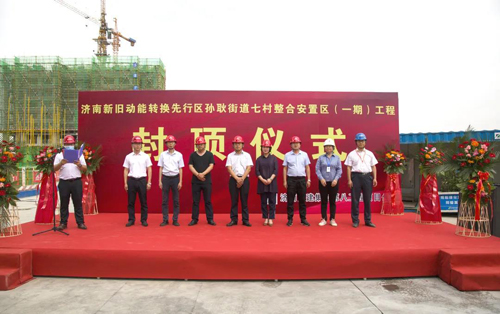 负责建设的济南新旧动能转换先行区孙耿街道七村整合安置区(一期)工程1#、14#楼主体结构封顶。