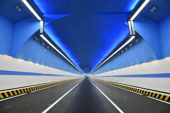 隧道内以“山水泉城”为主题,以泉水蓝为底色,打造会“识天气”的隧道灯光秀。采用3种色调+4种冷暖光源+6种感光模式,搭配出与晴、雨、云等不同天气呼应效果。驾行其中仿佛置身蓝色泉底,点点星光饰灯,既消除视觉疲劳,提高了行车诱导安全性,还愉悦驾乘人员心情,令人舒适放松。