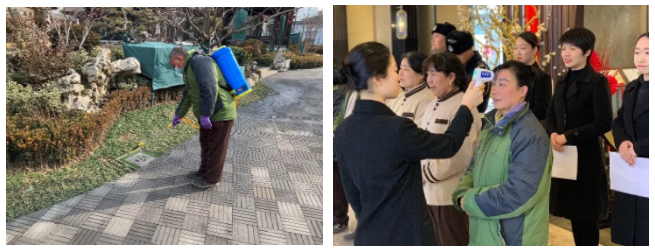 万科泊寓公寓(兴安佳苑)对进出车辆、人员进行测量体温,做好登记,每日进行消毒消杀,消杀人员穿戴专用工作服,工作人员佩戴口罩。紫薇阁小区全区封闭,设专用疫情防控检查点,加强人员出入管制。