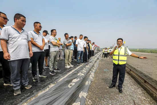 这次水稳路面摊铺使用了拓普康3D毫米级卫星定位摊铺控制系统,该系统不仅是金曰公司首次在省内高速公路施工中运用,也是省内首次将“3D”技术带入高速公路施工过程中。本次观摩交流会将新科研新技术引入省内施工行业视野,同时作为多方讨论平台,有利于各参会单位携手助推行业发展。