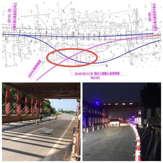 横跨省道安全畅通,要求高。文昌立交桥横跨长清G220绕城段,既要保安全又要保畅通,更是加大了交通组织、门洞和支架搭设、高处作业的施工难度。