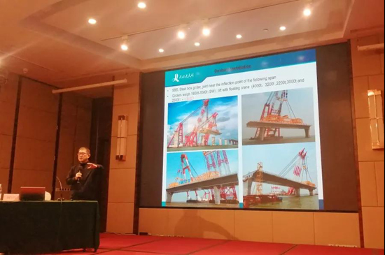 在交流会上,中铁大桥局集团有限公司副总工程师(原港珠澳大桥管理局总工办副主任)谢红兵作了《港珠澳大桥桥梁建设实践》专题报告,主要介绍上部结构钢桥选择背景,设计施工重难点及科技创新。