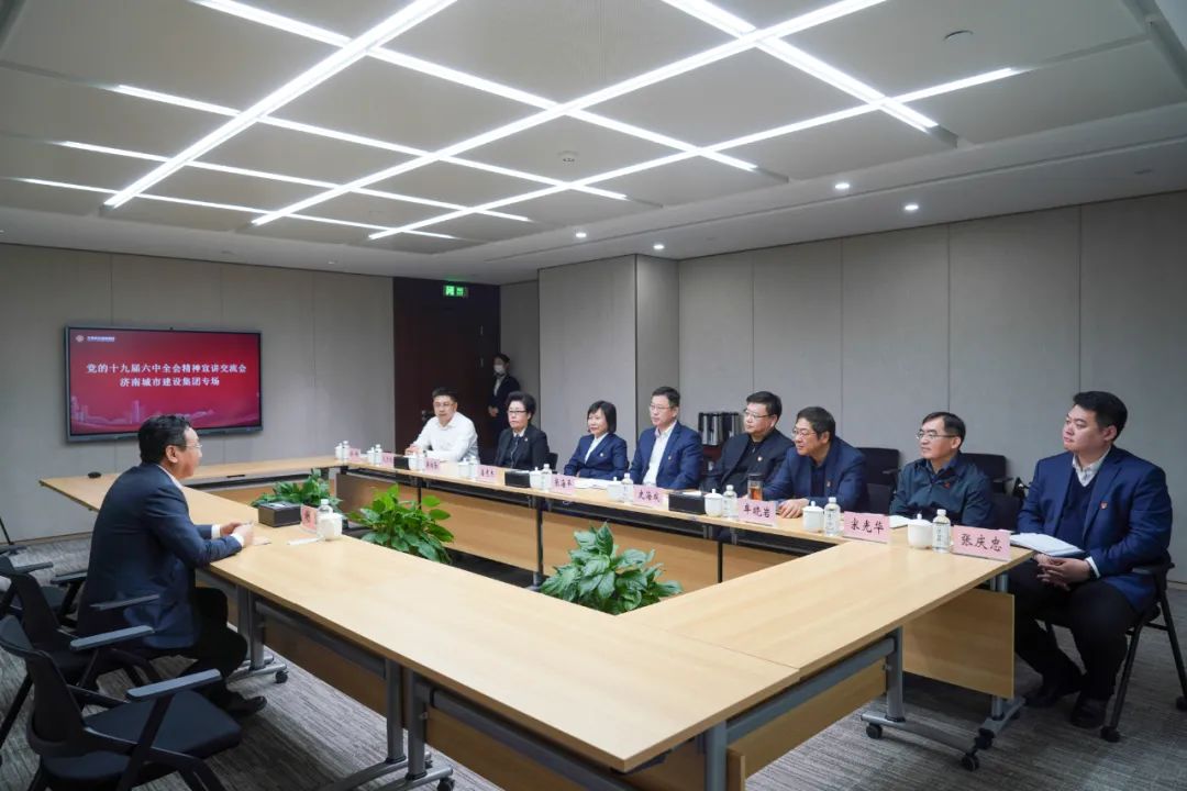 作宣讲报告,并与集团领导班子成员、部分参会人员进行座谈交流。市委宣讲团成员,市发展改革委党组书记、主任谢堃作宣讲报告。集团党委书记、董事长张海平主持会议并讲话。集团党委副书记、总经理史海成,集团领导班子成员出席会议。