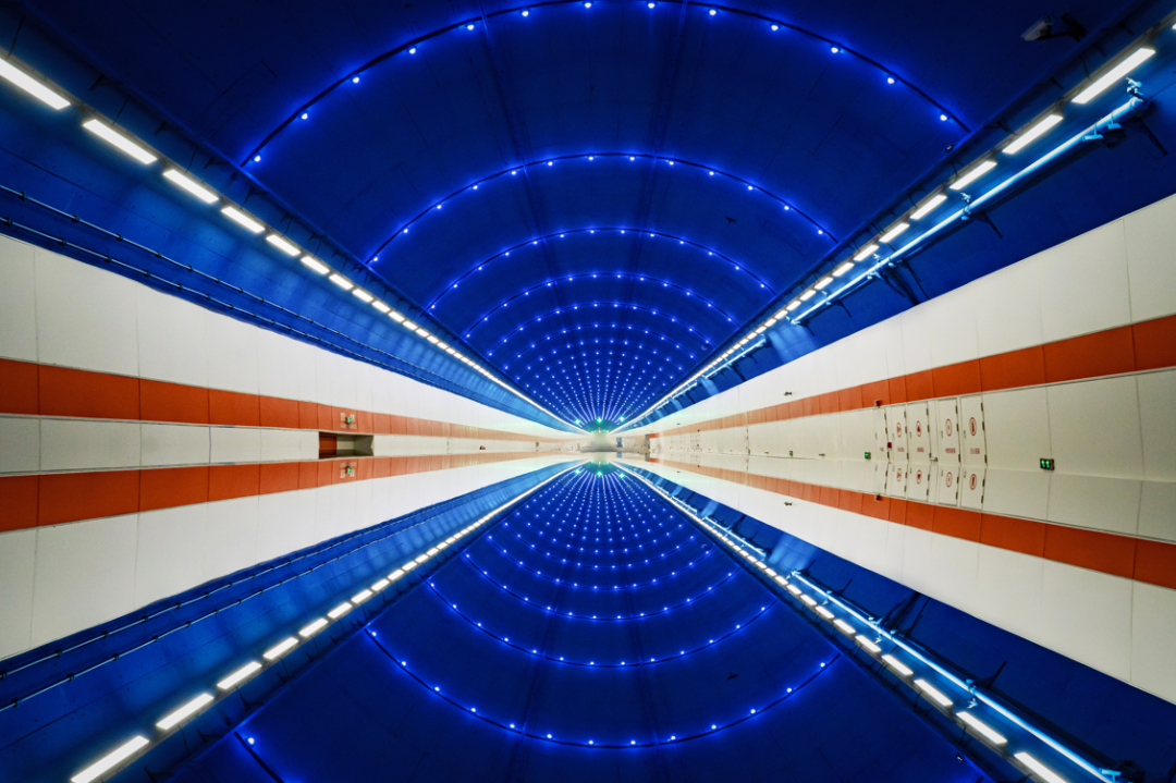 济南黄河济泺路隧道设计方案以黄河文化根脉为基,黄河之“光”为“场”,融合黄河历史、文化、自然、艺术等表现黄河两岸是我家。“黄河根脉 岁岁安澜”主题设计定位为城河相融,动静相融,蕴含“天人合一”的设计理念,让黄河隧道艺术空间景观和自然互为补充。设计中借黄河水纹传统纹样,将黄河文化与自然生态中的场地、色彩、光影结合,再造了黄河地形与黄河流动的自然之美,描绘了新时代黄河画卷中诗情画意的城市底蕴。
