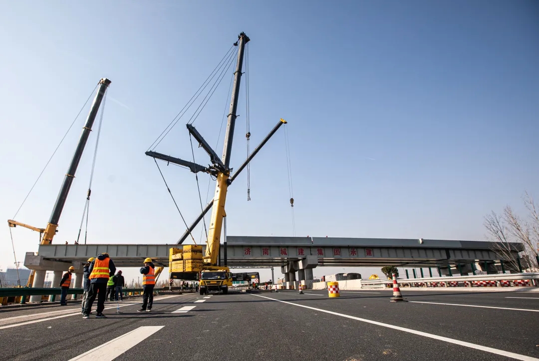 为保障吊装成功,确保青银高速正常运行,项目各参建单位积极作为,靠前指挥,积极协调各产权单位,破解实施过程中的难点,为项目建设提供良好的工作环境。同时,合理规划、科学组织,针对跨高速吊装交通组织的高危性,组织专家论证会,详细分析施工可能对高速产生的影响进行论证,对可能出现的安全隐患进行反复论证,科学指导施工,并积极与高速、交警、路政等部门协调、对接,实现安全有序施工。