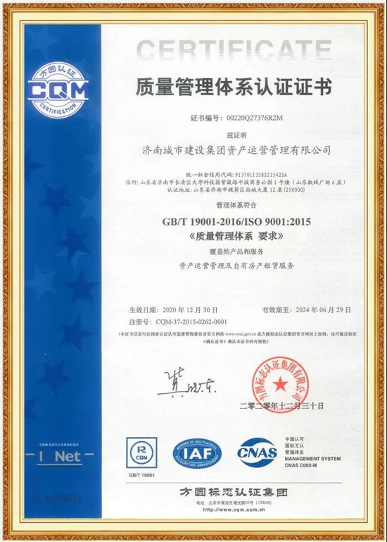 资产公司通过“质量、环境、职业健康安全、资产管理”四体系认证工作,为企业各项业务发展打下坚实基础,为推进公司规范化管理、提高治理效能迈出重要一步。