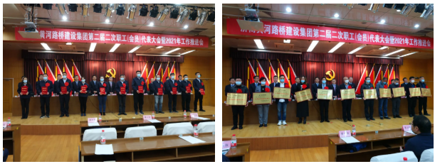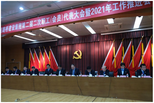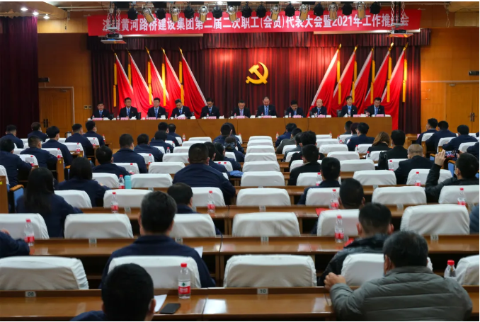 副总经理许为民,工会副主席陈屹东到会指导。黄河路桥公司党委书记、董事长张明生,党委副书记、总经理谢技勋及领导班子全体成员和职工(会员)代表共103人参加会议。会议分为职工代表大会和2021年工作推进会两部分。