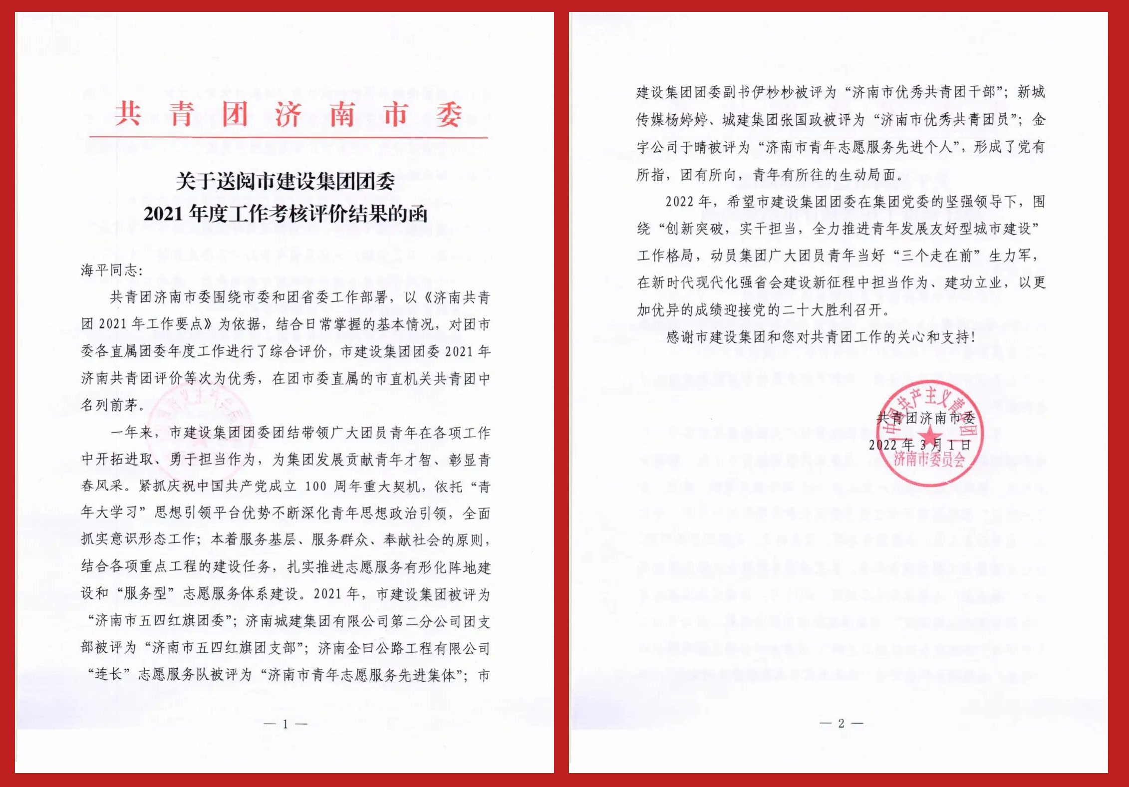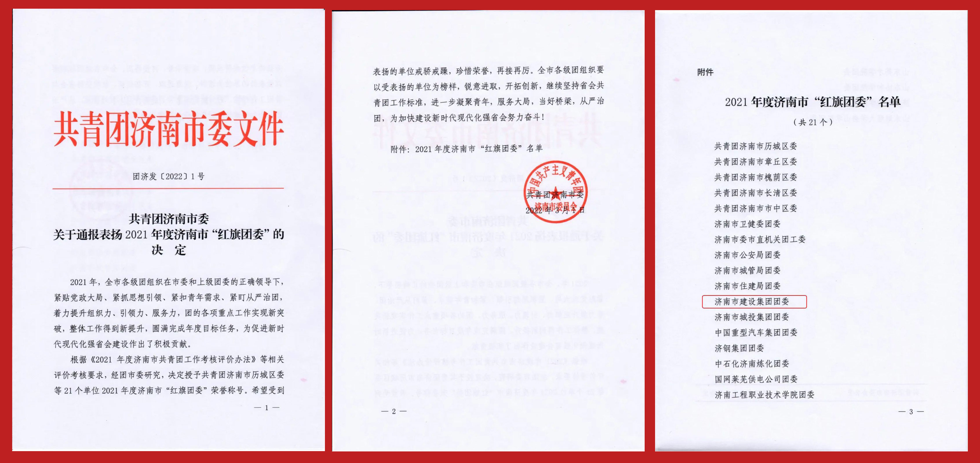 团委被评为2021年度济南市“红旗团委”。共青团济南市委向集团主要领导发来了《2021年av中文