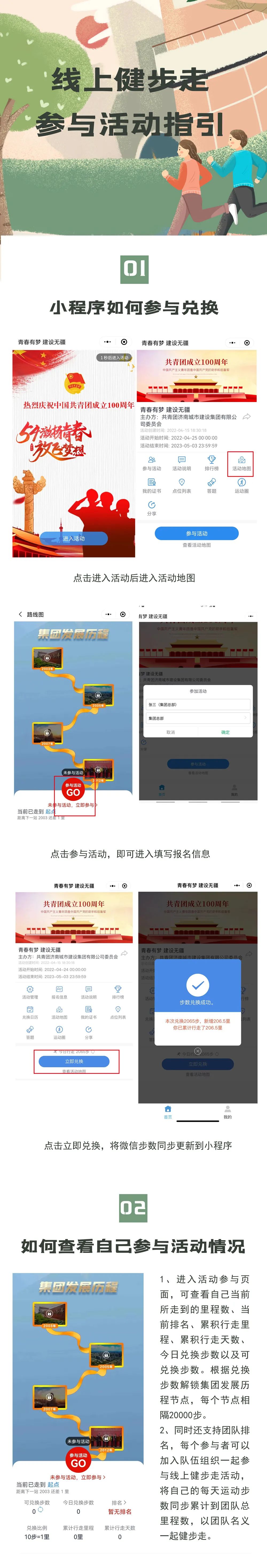 有限公司委员会主办,共青团济南金曰公路工程有限公司委员会、济南新城文化传媒有限公司承办的“青春有梦 建设无疆”——职工线上健步走活动将于今晚零点正式上线,活动时间为2022年4月25日——5月3日(共十天)。