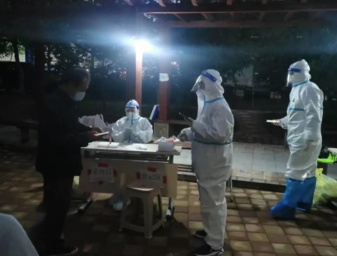 “请佩戴好口罩,保持一米以上安全距离”“请提前准备好检测码或身份证,有序排好队”……熟练地登记、扫码、采样,一气呵成,现场核酸采样后,杜谦又跟随社区医护人员挨家挨户上门检测。