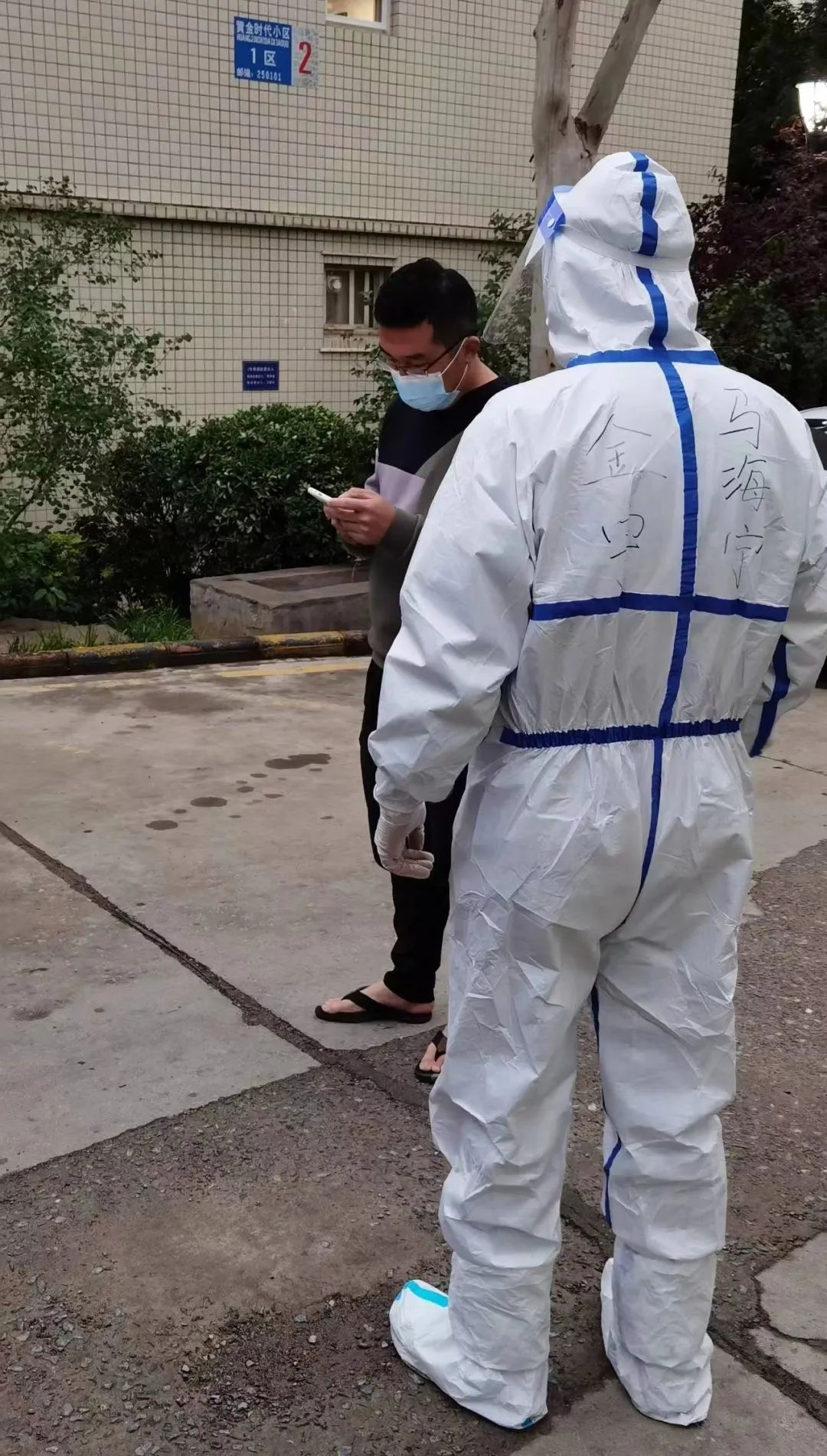 金宇信息科技集团交通市政公司的马海宁下沉到高新区黄金时代社区,主要负责居民生活物资配送、协助核酸检测等工作。一天晚上结束工作时已是晚上十点钟,外面还下起了冷雨,下楼之后看到两位医护人员站在楼下等人,而且穿着短袖。主动询问后得知对方是外地援济医护人员,正在等居委会的人来接他们。“虽然素不相识,但都是参与疫情防控工作的,感觉是一个战壕的人,而且人家是大老远跑来帮助我们”,马海宁便主动把他们送回了住处,送下他们后,也没留姓名和联系方式,马海宁便匆匆赶回了40多公里外的家中。