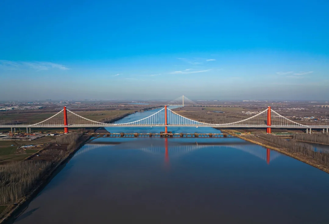 耐久之桥。项目大面积应用组合桥面板。主桥、水中引桥及跨大堤引桥的全长2788米范围内,均采用正交异性钢-混凝土组合桥面板,有效解决了钢桥面系疲劳及桥面铺装易损难题,增加结构耐久性和可维护性。