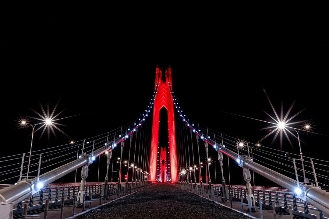 经济之桥。公轨合建,同层布置。可集约利用过河通道资源,降低工程规模,节省工程投资,展现集约化建设理念。塔柱从主梁桥面公路交通与轨道交通之间穿过,兼顾景观效果和行车安全。