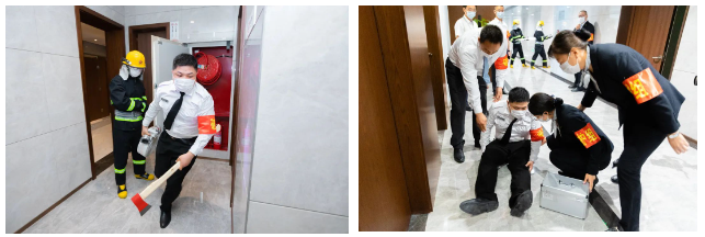 此次消防安全演习共分为楼层火灾发生(处置)、消控室指令发布、物业人员到场处置、现场人员疏散、点评总结五个阶段进行。旨在通过演习进一步强化员工消防安全意识,熟悉掌握在紧急情况下报警、扑救、救护及逃生方法,提升各责任人熟悉和了解应急组织机构和应急工作流程,强化共同协作,提高应急处置能力,确保全体员工的生命安全。
