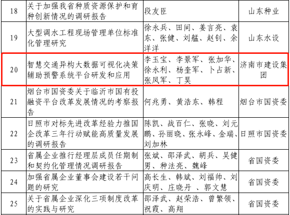总工办牵头,集团所属山东金宇信息集团有限公司研究的《智慧交通异构大数据可视化决策辅助预警系统平台研发与应用》成果荣获“全省国资国企系统2021年度优秀研究成果”一等奖。
