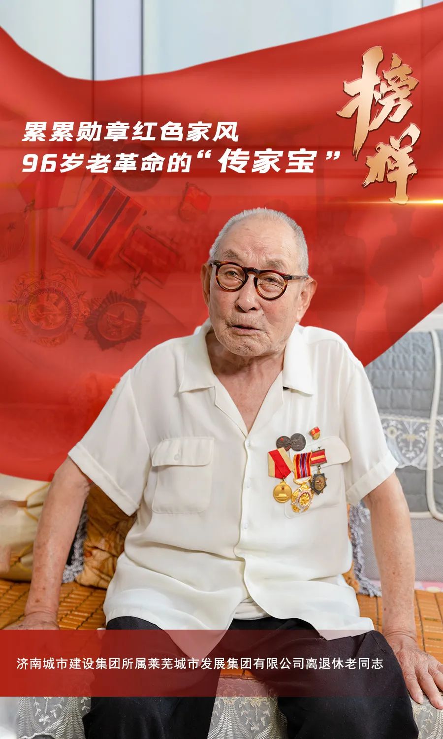 所属莱芜城市发展集团有限公司的离退休老同志中,有这样一位勋章累累的96岁老革命——戴风楼。他谦虚勤恳、艰苦朴素,几十年革命及工作生涯坚定感党恩、跟党走;他以身作则、家风清正,红色基因在家庭中、在工作岗位上代代传承。