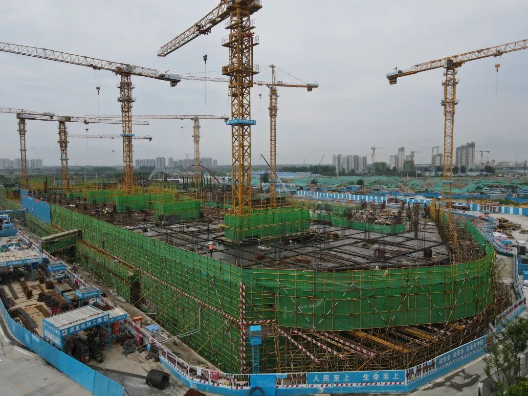 项目自开工建设以来,项目坚持以“党建引领,目标导向、论证支撑、科技先行”的工作理念,强化疫情防控常态化的同时,有序推进基坑支护、土方开挖、基桩施工、垫层筏板、主体结构等各个环节,充分预判施工重难点并强化技术方案论证工作,破解项目施工过程中的制约因素,全力推进项目高质量建设。