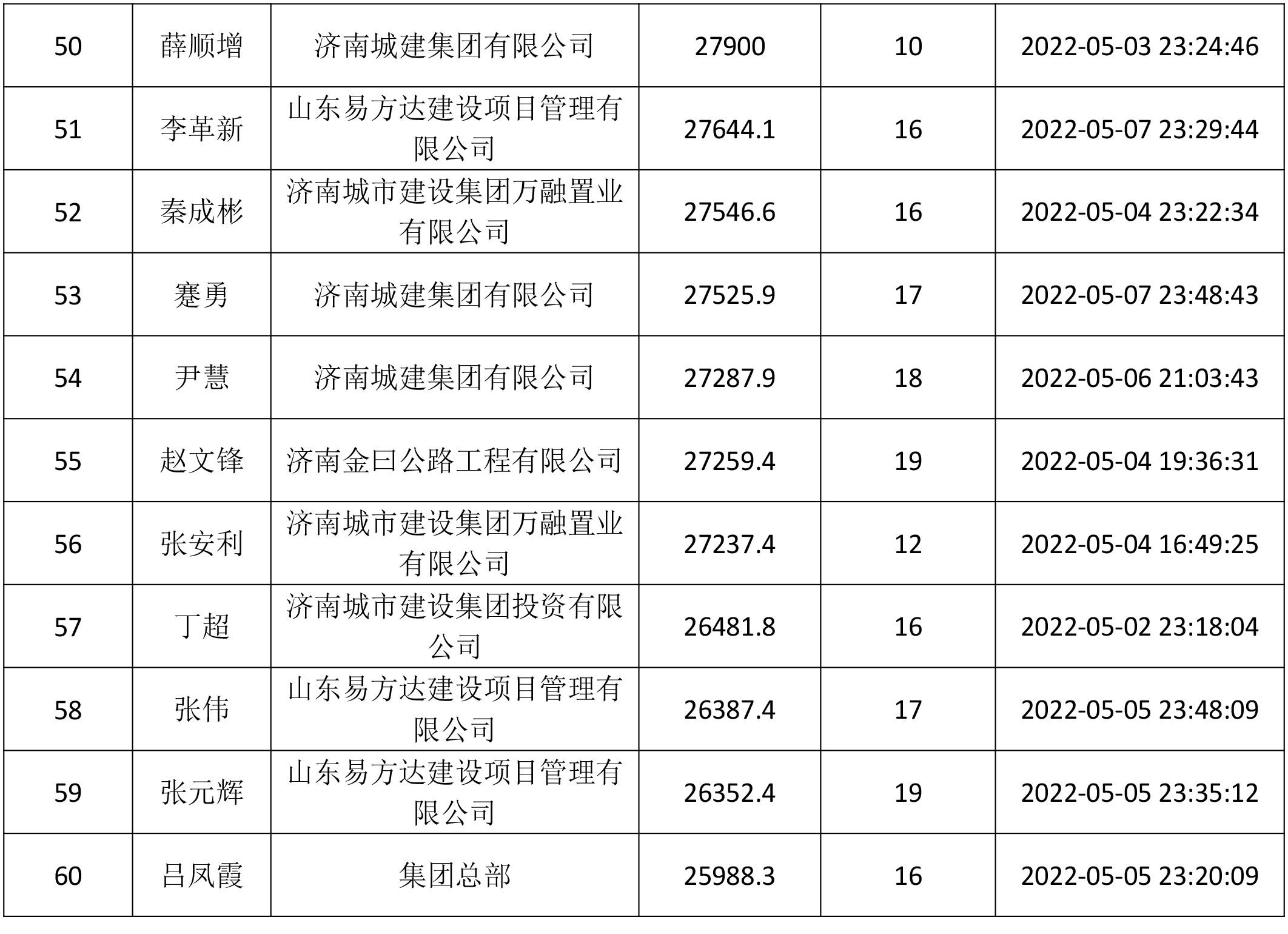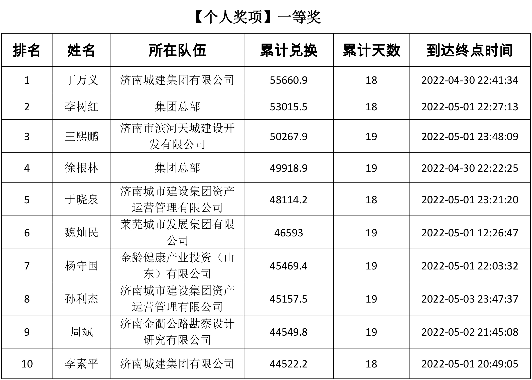 有限公司委员会主办,共青团济南金曰公路工程有限公司委员会、济南新城文化传媒有限公司承办的“青春有梦 建设无疆”——职工线上健步走活动于5月13日正式落下帷幕。此次活动共持续19天,参与人数达1716人。