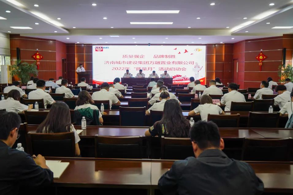 万融置业有限公司召开2022年“质量月”活动启动会,万融置业公司领导班子成员、各部室、事业部、子公司负责人及项目部全体人员参加会议。