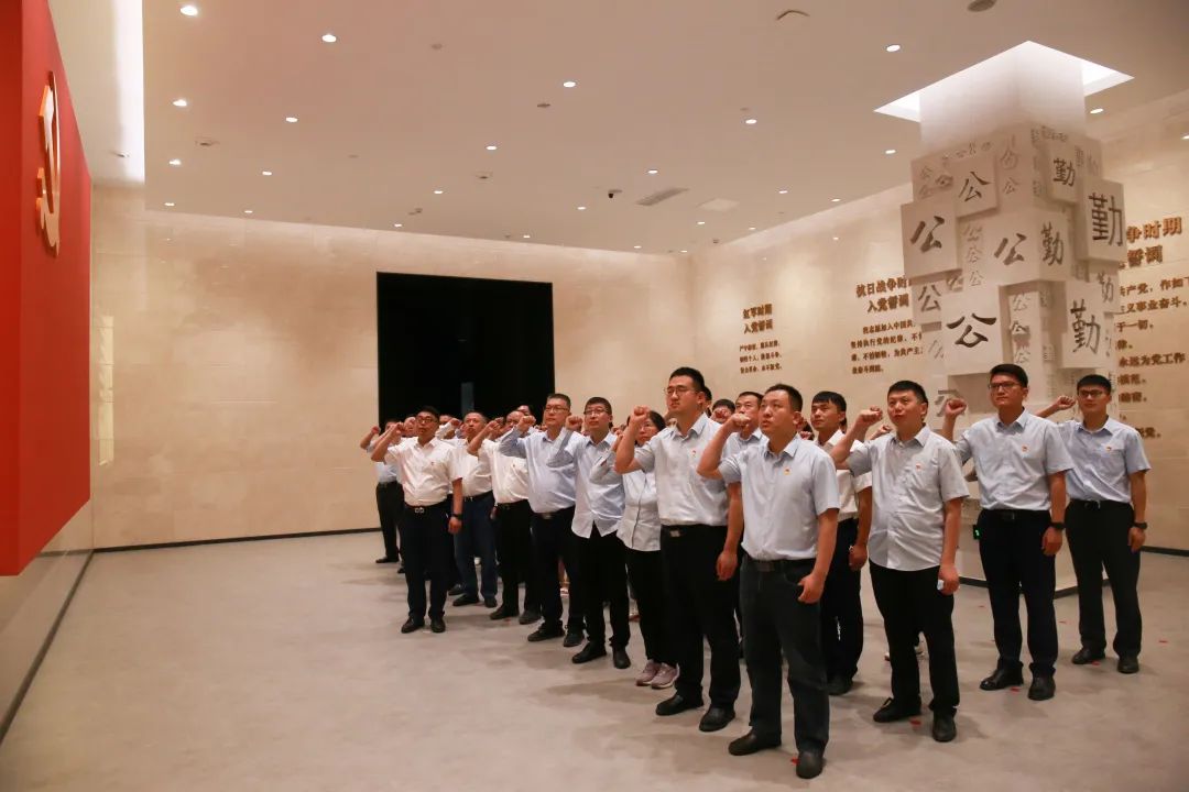 在教育馆宣誓厅,面对鲜红的党旗,全体党员重温入党誓词并庄严宣誓,永远牢记共产党员的初心使命,始终筑牢为共产主义事业奋斗终生的坚定信念。