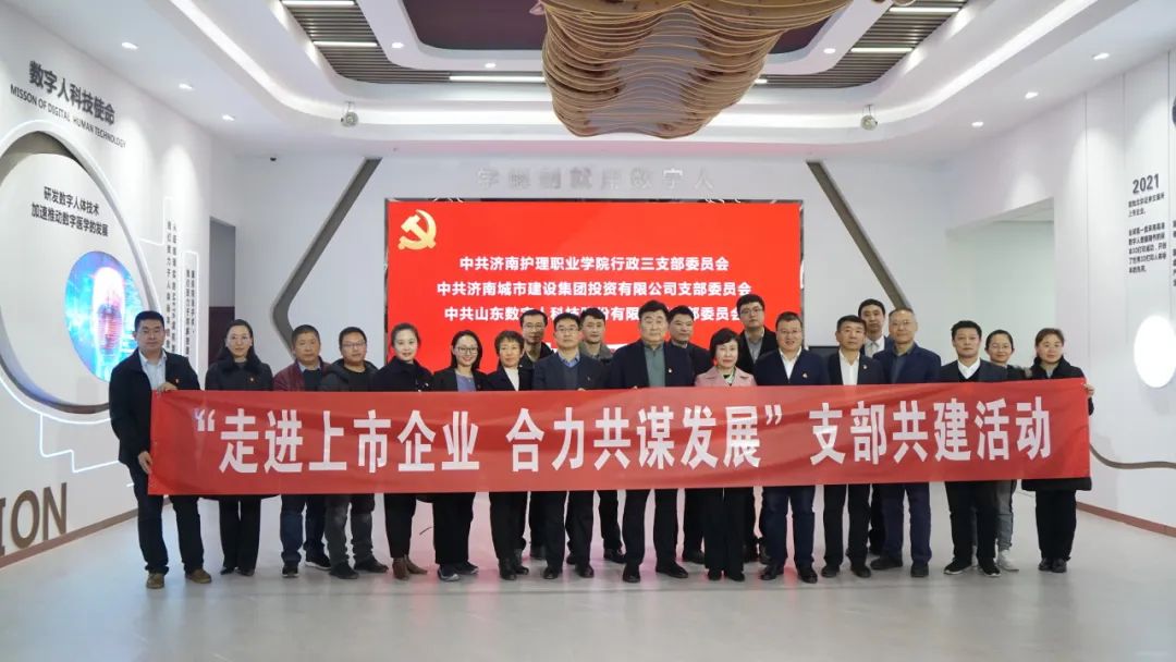投资公司党支部与济南护理职业学院行政三支部、山东数字人科技公司党支部,共同开展“走进上市企业 合力共谋发展”支部共建活动。