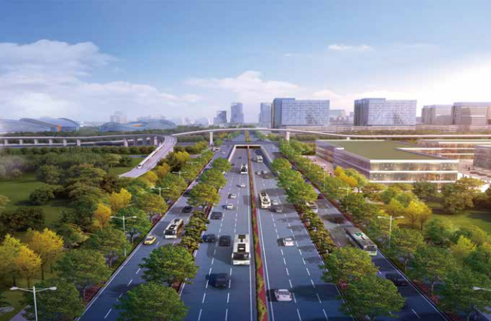 项目是黄河北岸复合交通走廊,是起步区内部重要的快速通道,作为起步区的景观轴、交通轴、经济轴、功能轴,串联 3 大组团 5 处重点片区;同时也是衔接多条跨黄通道,沟通起步区与主城区,加强南北联系的重要走廊。黄河大道考虑交通功能优先、兼顾绿色出行、生态景观等多重需求。
