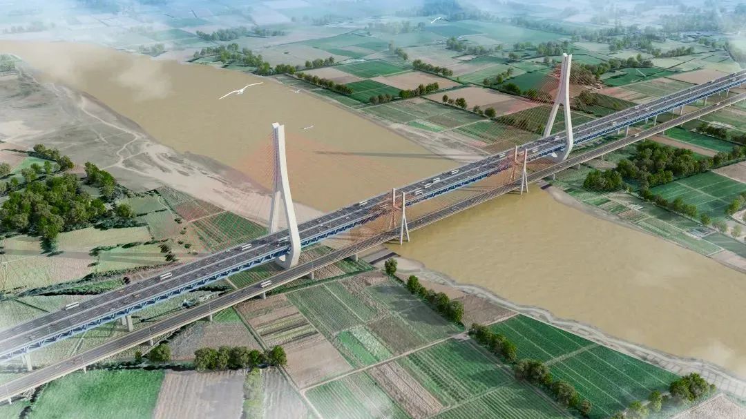 项目南起蓝翔中路,向北穿越济广高速、黄河、鹊山水库沉沙池,在龙湖湿地公园接地,设置收费广场,与在建G309立交衔接。项目线路长度5755米,其中隧道长约4721米,隧道外径16.8米,双向六车道。