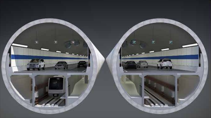 项目位于济南市新旧动能转换起步区大桥街道 , 南起在建黄河隧道北岸敞开段 , 下穿鹊山水库,接入原省道 S101,直至 G308,总长度 4496 米,其中隧道长 3205 米 ( 采用双管双层盾构形式,盾构段长 2040 米),隧道外径 15.2 米,内径 13.9 米,上层为 3 车道机动车道,下层预留城市轨道交通敷设条件。