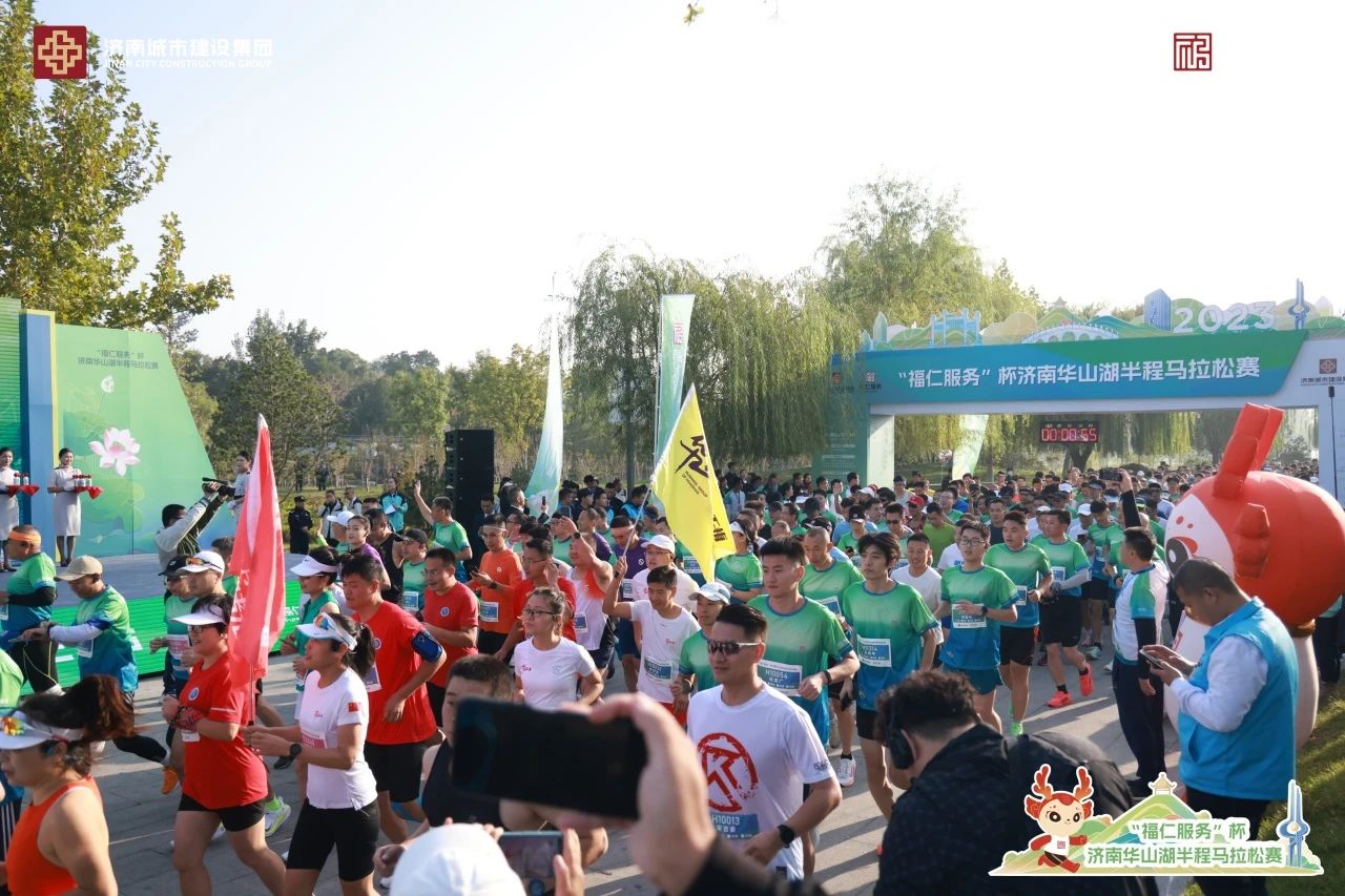 10月15日,“福仁服务”杯济南华山湖半程马拉松赛在华山历史文化湿地公园开跑,3000余名跑者齐聚华山湖畔,为“鹊华秋色图”平添一抹活力底色。市人大常委会、市体育局、历城区政府有关负责同志,集团部分领导班子成员出席活动。
