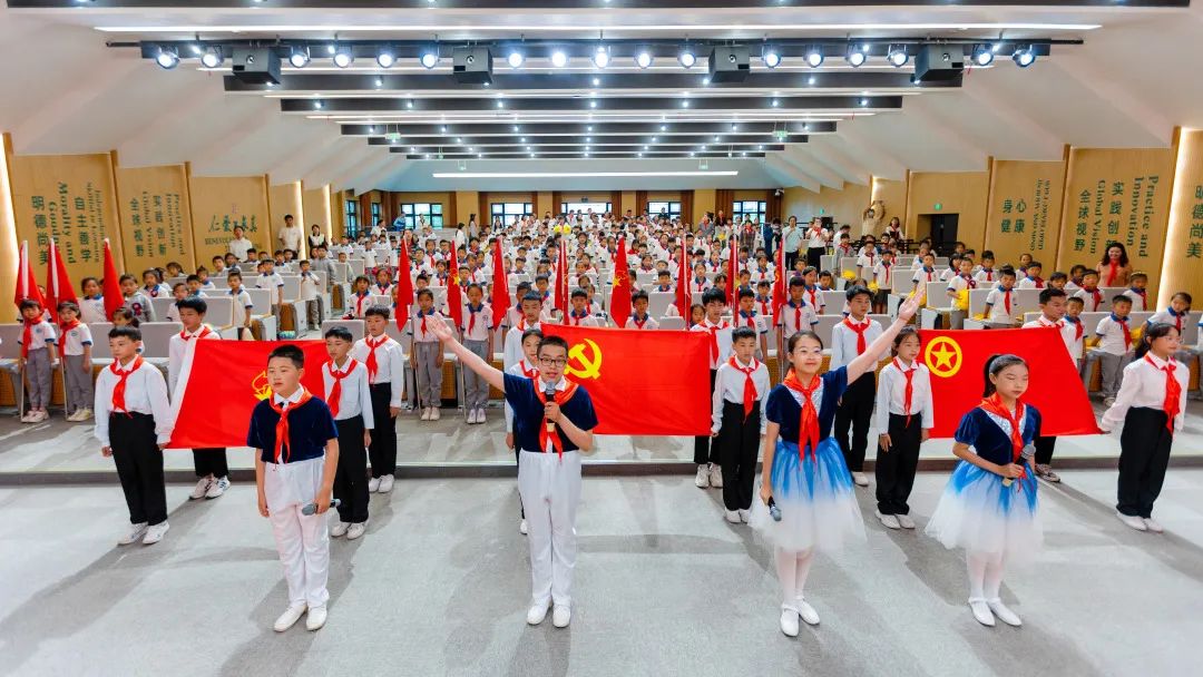 活动现场,与会嘉宾们为新入队的少先队员们佩戴了红领巾,为新建中队授中队旗,见证了党、团、队三旗传递,徐冬梅为孩子们送上了“六一”寄语,av中文