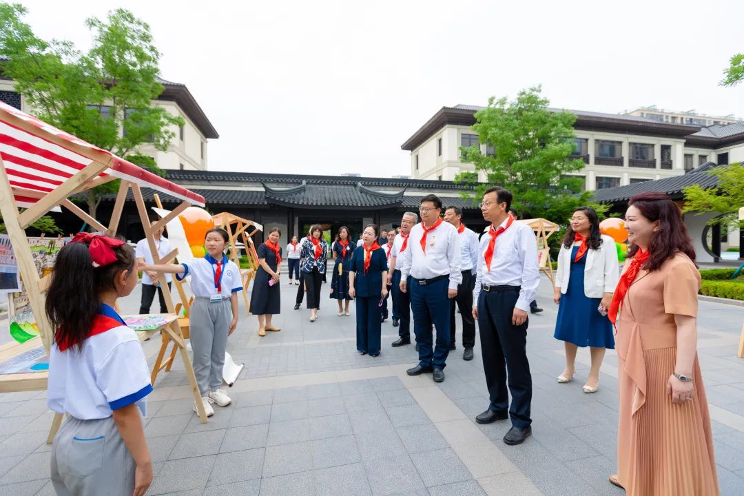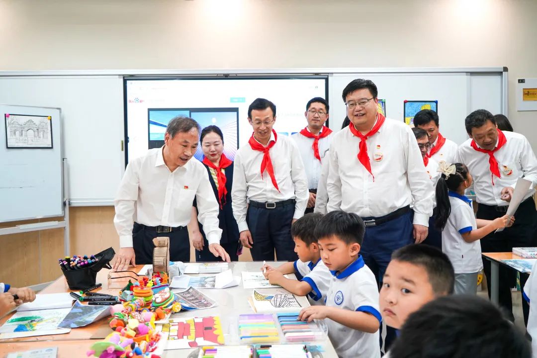 活动结束后,孙常建一行在杨柳春风学校进行了实地参观调研,了解了书香校园建设活动,并与孩子们进行了亲切交流。孩子们热情洋溢地介绍了“槐荫少年说”党团队一体化品牌建设活动、“我是黄河岸边好少年”黄河文化项目化学习特色课程、“我眼中的康养名城、活力槐荫”画展和手工展、“家住槐荫‘育’见成长”教育品牌、学校校训和南北融合办学理念等情况,并进行了古筝、写生、经典诵读等美育教育特色活动表演,美术社团、舞蹈社团、合唱团、足球社团、啦啦队的成员代表们进行了成果展示。