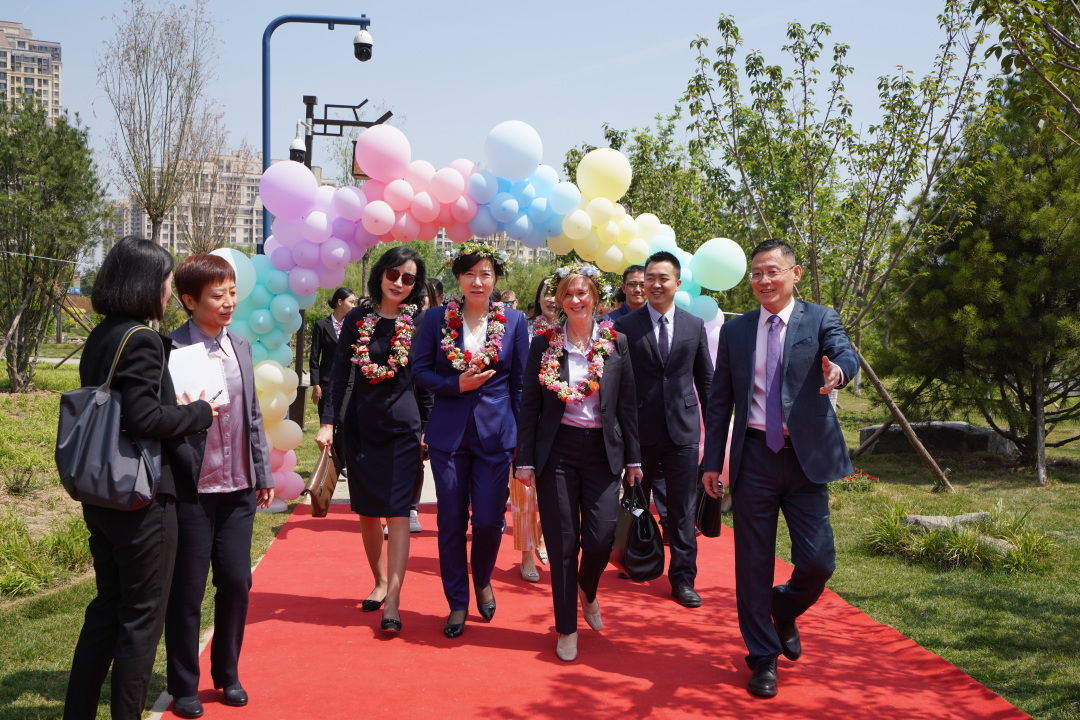 5月9日,济南国际友城花园——芬兰万达友城花园在济南举行开园仪式。副市长杨丽与芬兰驻华大使孟蓝共同为芬兰万达国际友城花园开园剪彩。