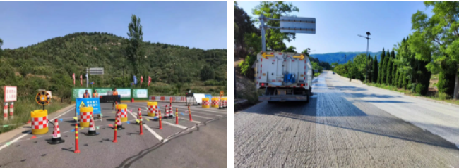 S237章新线章丘三叉口至泰安莱芜界段中修工程全线15.72公里,路面宽度5.3-6.0米,章丘段6.3公里,采用路面微表处工艺处理,莱芜段采用铣刨重铺沥青混凝土面层工艺施工。